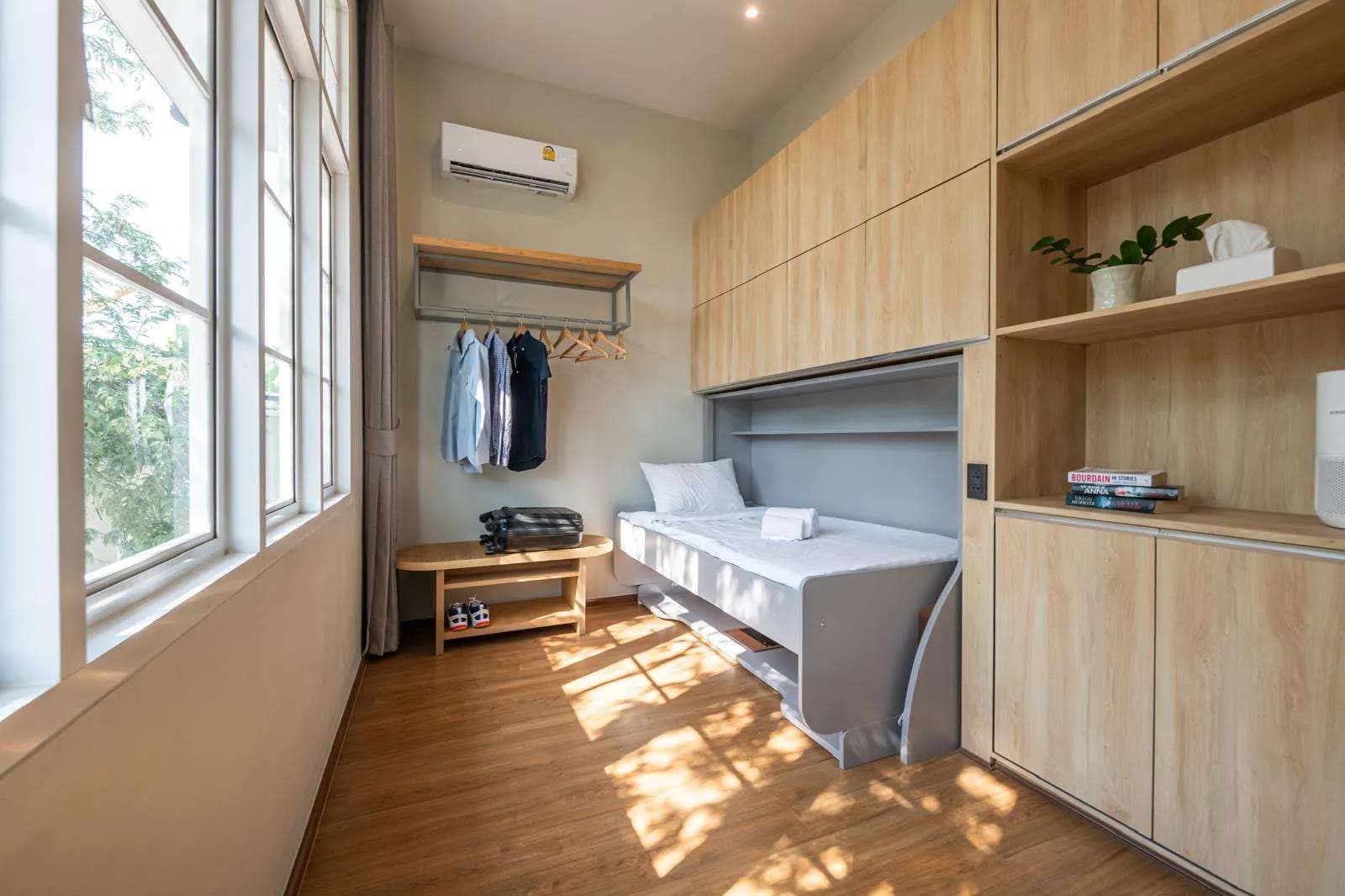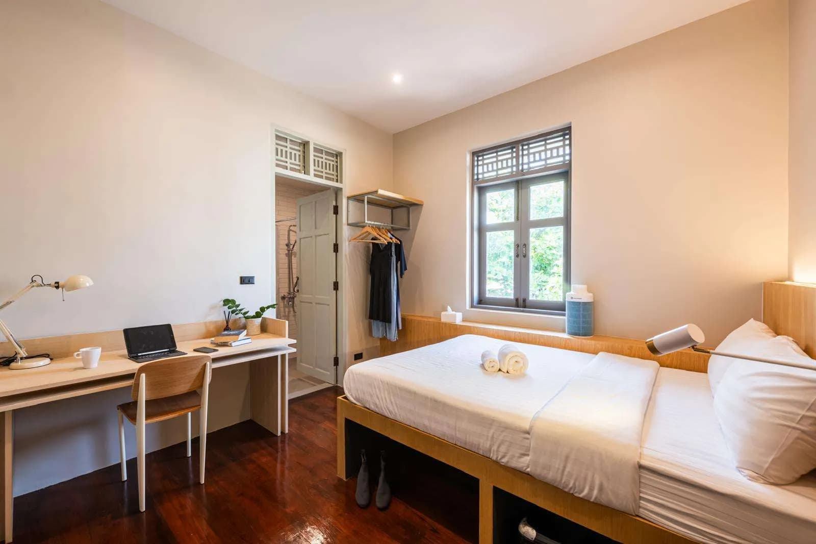 Created for digital nomads on a budget, our 8–11 sqm Flexie rooms make smart use of space. Each room features a bed that transforms into a desk, giving you a flexible setup for both rest and productivity.